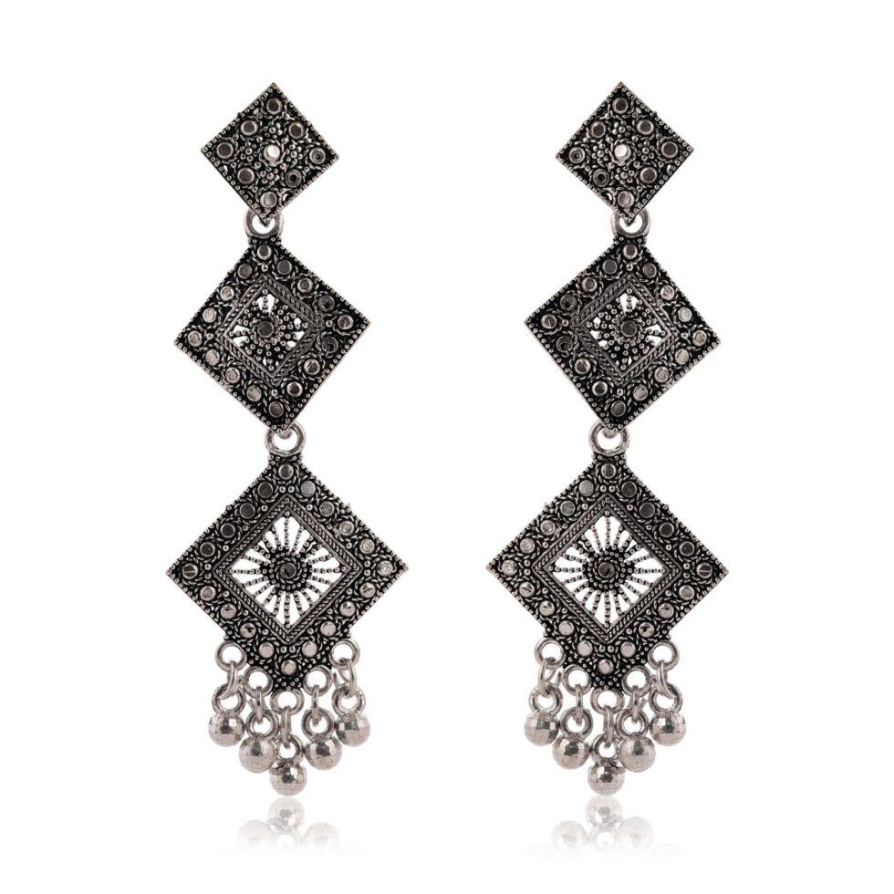 Women Traditional Silver AZ838-OXidised Jhumka Set | German Silver Chand Baliyan & Jhumkas Earrings for Women | Birthday & Anniversary Gift -AZ838-OX-ER47